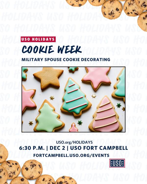 Join us for a special Military Spouse Cookie Decorating Night on 📅 Monday, December 2 ⏰ Starts at 6:30 p.m. 📍 USO Center