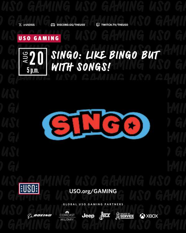 Join us for game night on August 20th. Singo is a fun BINGO style game but instead of using the traditional numbers & letters, your card will include song titles! We will be serving appetizers and snacks during the program. Doors open at 5 p.m.– the game starts at 5:30 p.m. All ages are welcome. We look forward to a fun night out at the USO!