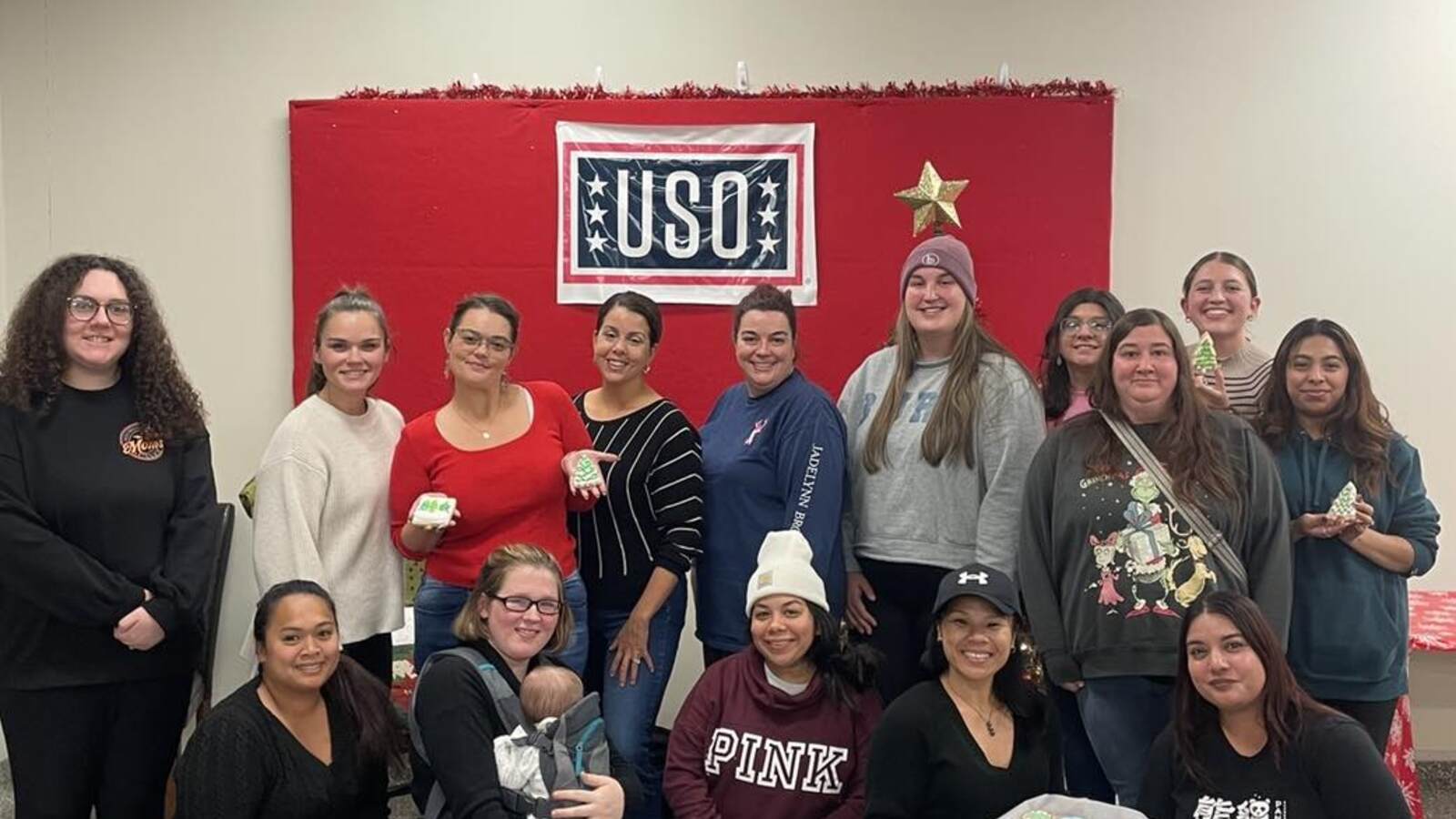 Creativity and connection were front and center all month long. Our Elves’ Workshop transformed the USO into a tiny corner of the North Pole, where imaginations ran wild over crafts, cocoa mugs clinked, and laughter filled the room. Military spouses also gathered for Coffee Connections during USO Cookie Week, enjoying a cookie decorating class led by one of our talented volunteers. It was a sweet afternoon of creativity, conversation, and community, exactly what the season is all about and what we strive for at the USO.