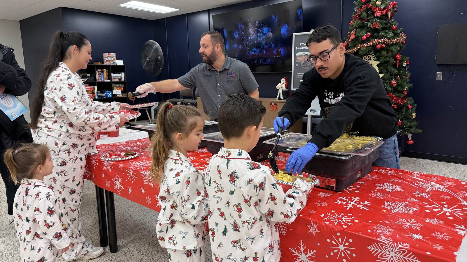 To close out the season, the USO Fort Campbell center transformed into the Snowflake Lodge for a festive Holiday Mystery Dinner. Guests enjoyed an evening of intrigue and entertainment thanks to Nikki with “Take A Leap Acting, Dance & Improv,” who produced and directed the show. USO volunteers took on roles as actors, while others worked behind the scenes to set up, serve dinner, and create the magic that made the night unforgettable.